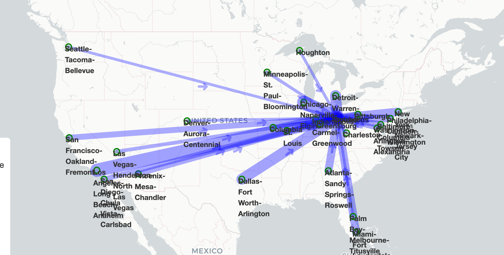 Our analysis tracks the origin markets of out-of-state investment, with line width indicating relative transaction volume.