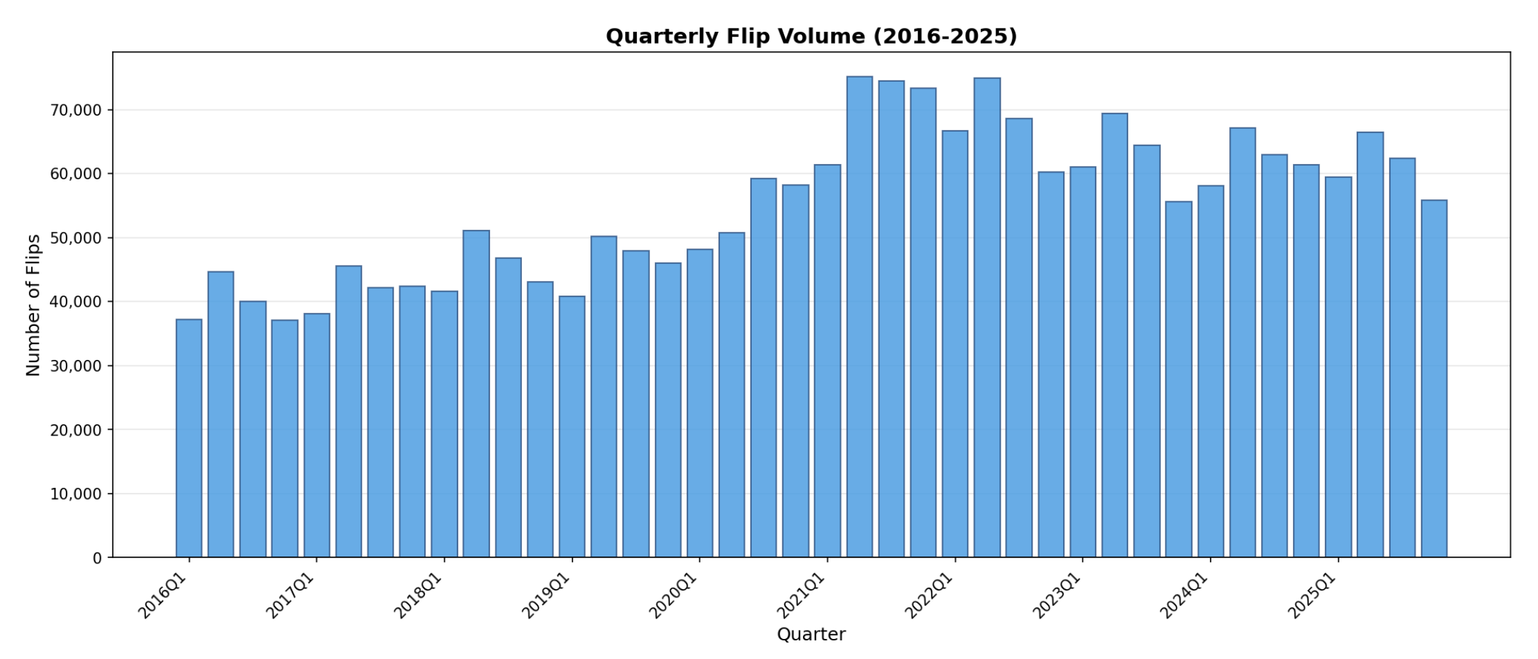 We analyzed the ~245,000 homes flipped in 2025: properties bought specifically to renovate and resell, excluding wholesaler pass-throughs, iBuyer transactions, and other incidental resales.
