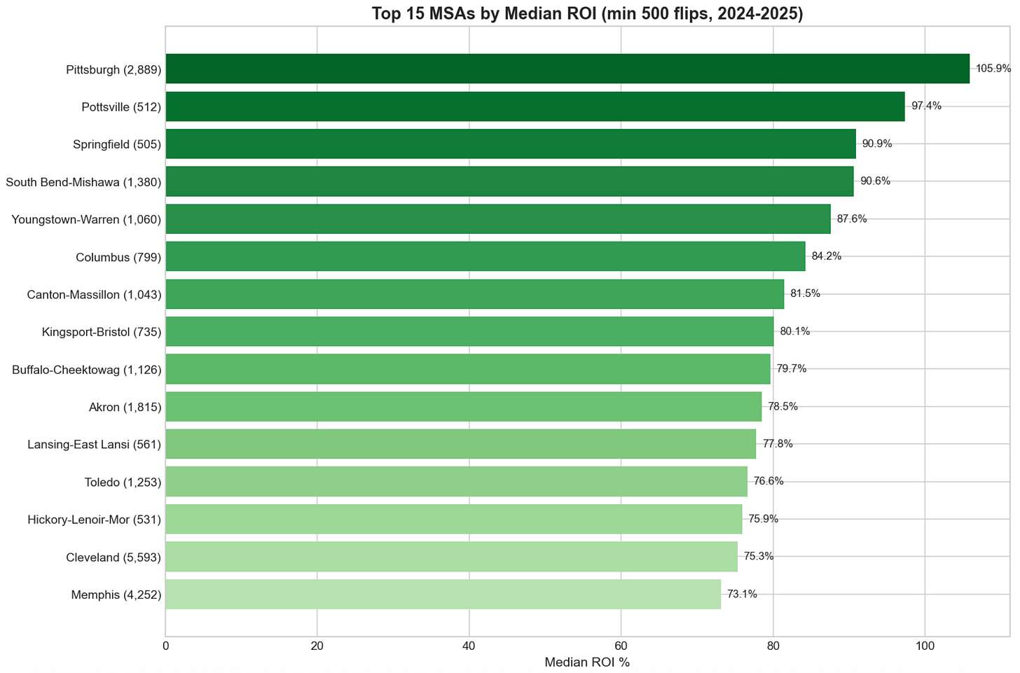 The Rust Belt dominates the high ROI list, with Ohio claiming 5 of the top 15 metros with the highest ROI.