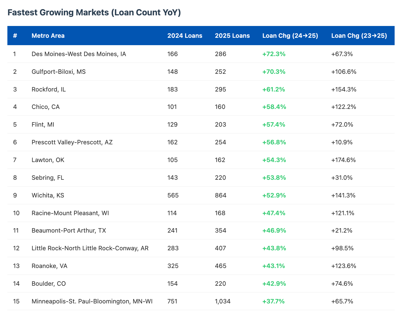 The largest private lenders continue to grow, with 17 of the top 25 growing loan count YoY.