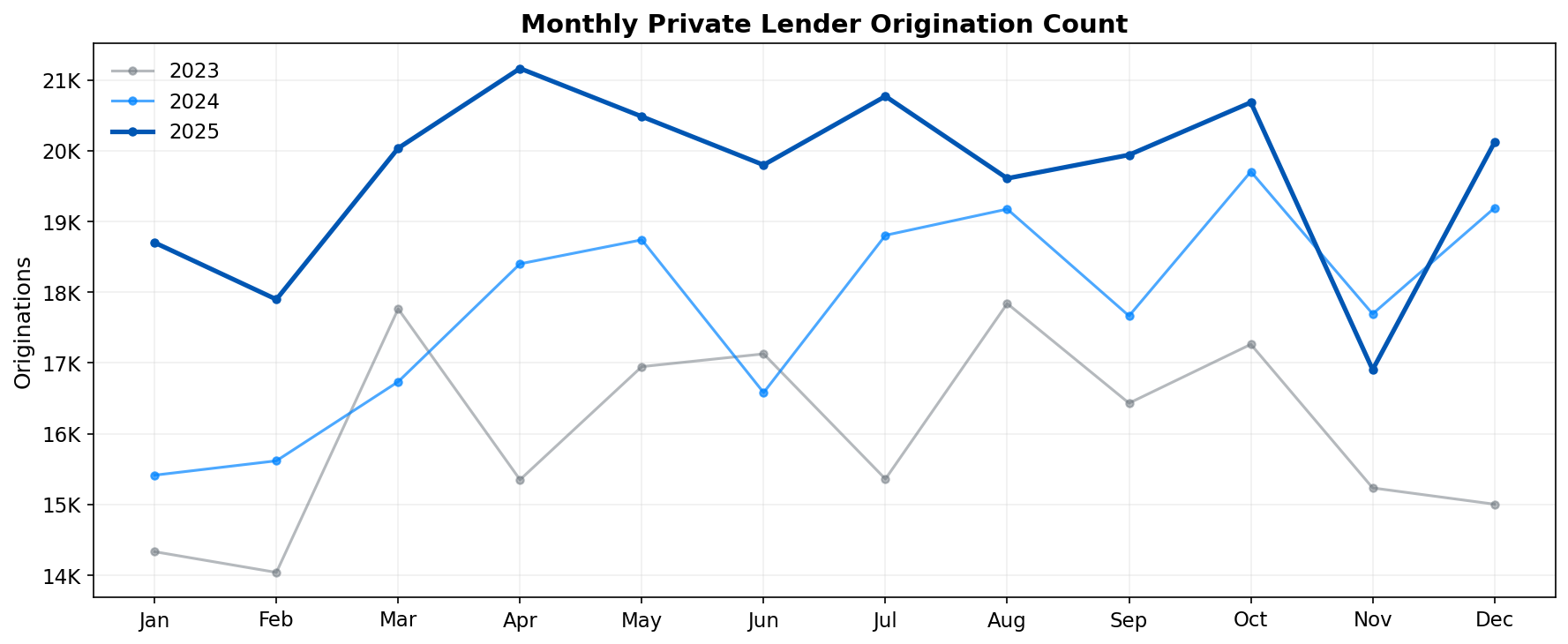 Origination volumes YoY were higher in every month of 2025 than they were in 2024, and 11 of the 12 months were higher in origination count.