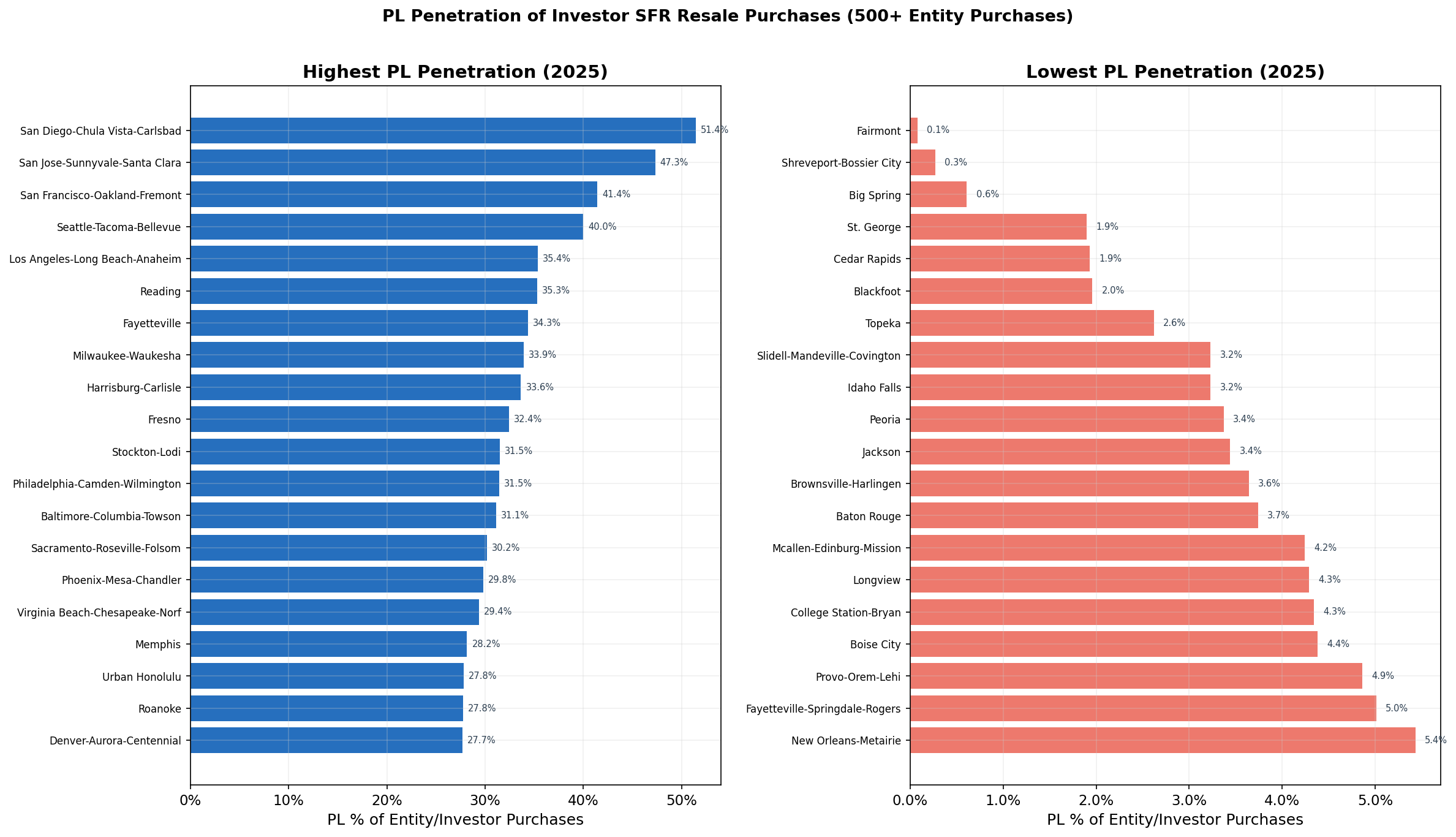 Less expensive markets where investment properties can be purchased with cash easier continue to have the lowest private lender penetration rates, with the lowest being <5%.