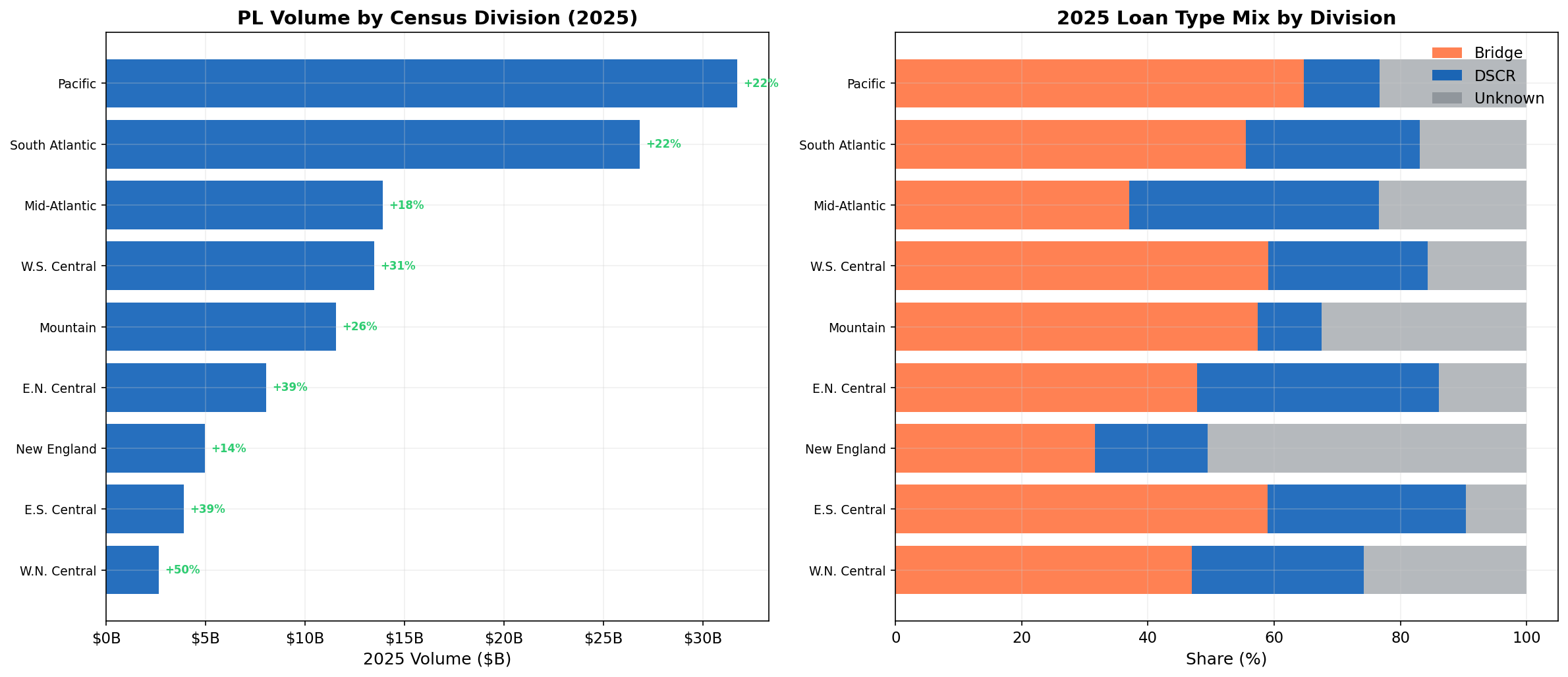 Every region in the United States saw an increase in private lending activity, with the Pacific and South Atlantic leading the charge with most volume increases.