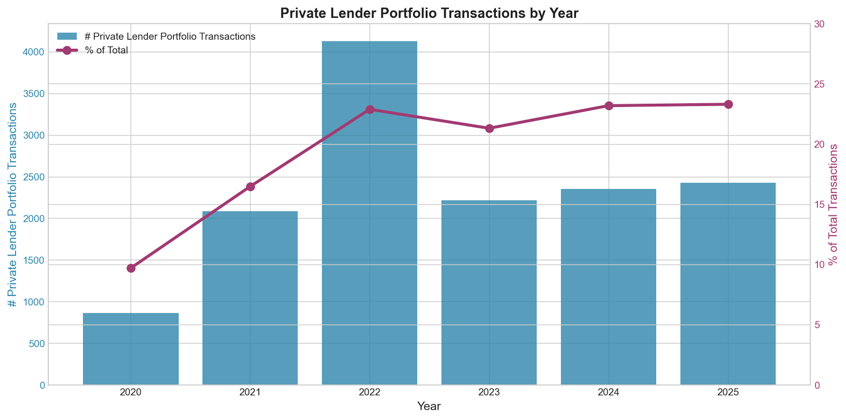 Notably, in 2025, private lenders represented 9 of the top 10 portfolio lenders by volume.
