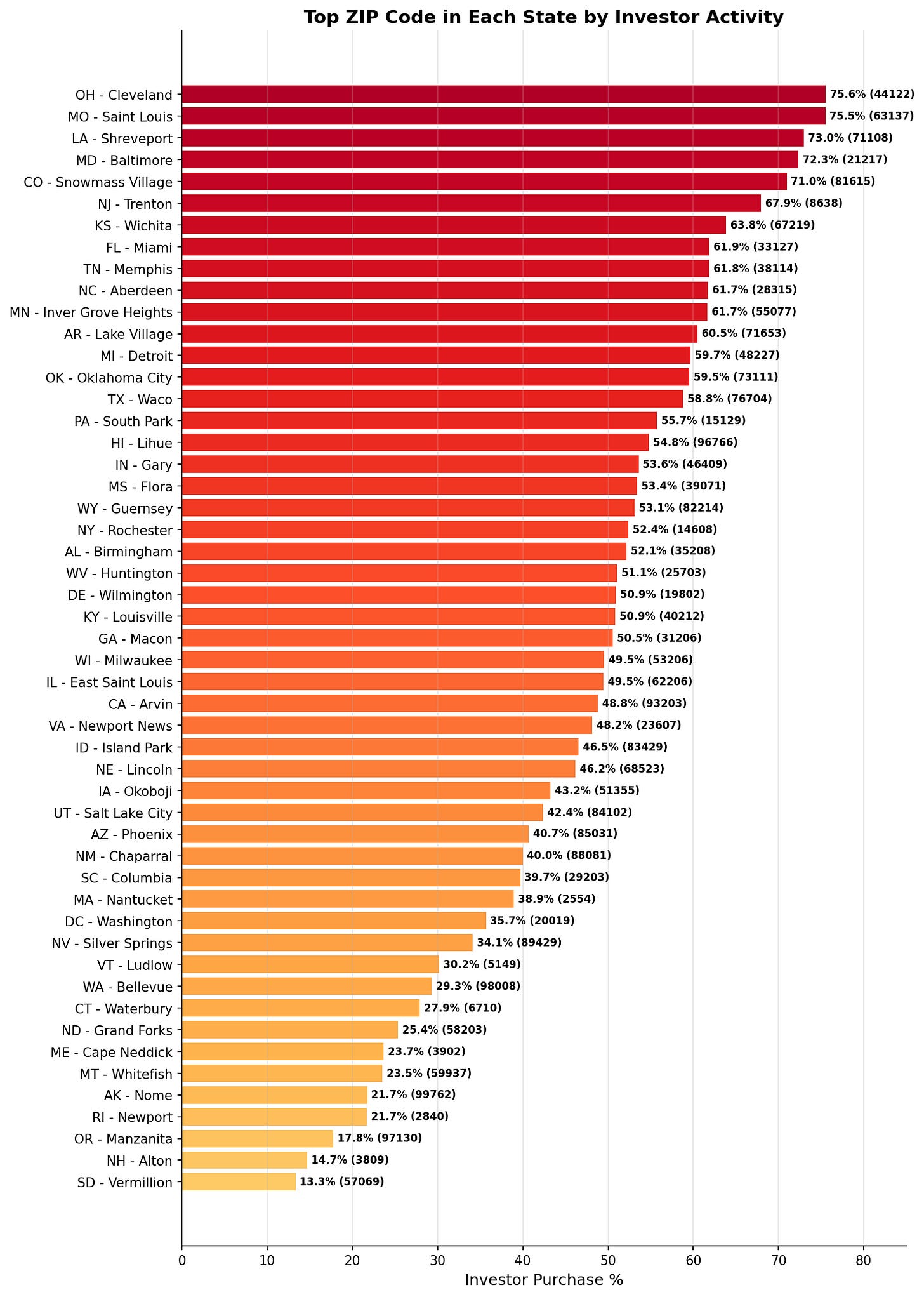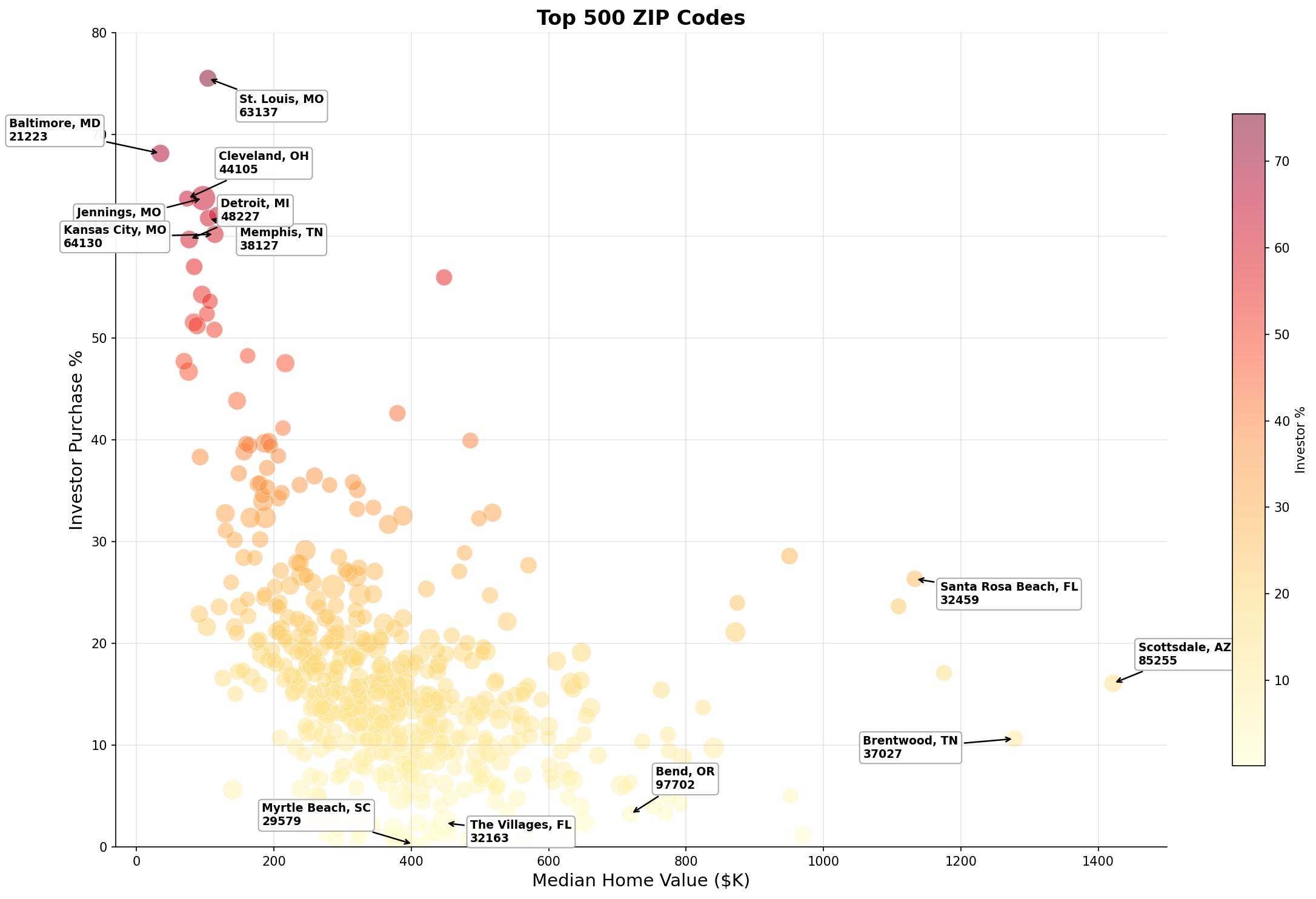 The top investor ZIP codes reveal two distinct strategies: ultra-affordable urban cores where investors chase rental yield, and high-end resort markets where investors buy trophy properties.