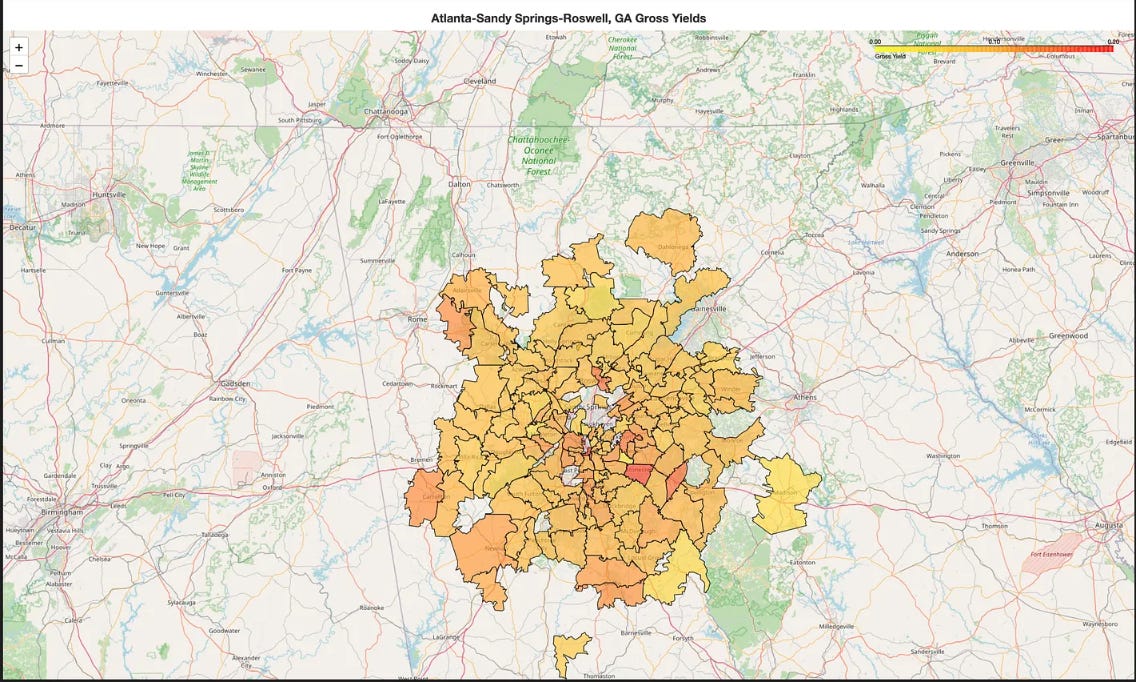 Metro-level gross yield heat maps broken down by ZIP code