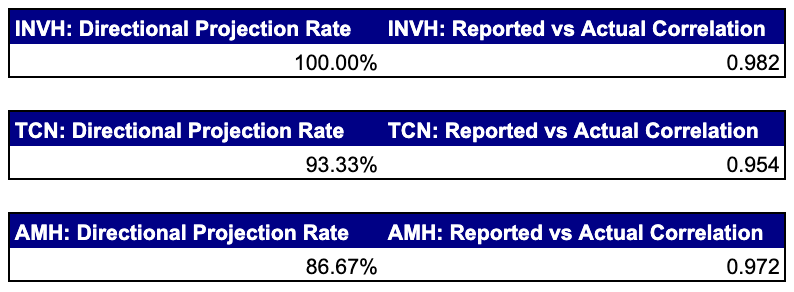 • Identified and reconciled the entities that INVH, AMH, and TCN have purchased homes under.