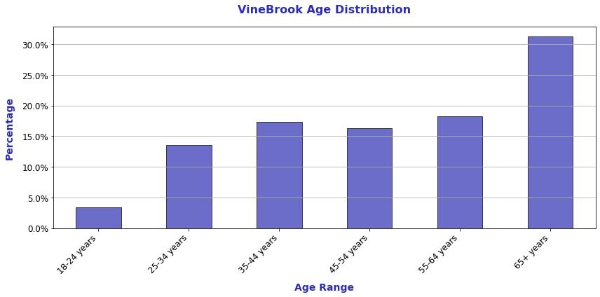VineBrook’s age distribution is roughly in line with other SFR funds, with the largest population being 65+ followed by 55-64yrs.