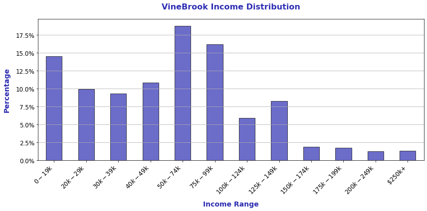 VineBrook typically buys properties in line with a strategy of workforce housing, targeting more affordable areas. The lower income distribution relative to that of other funds is reflected at the census tract level for areas where VineBrook owns properties.
