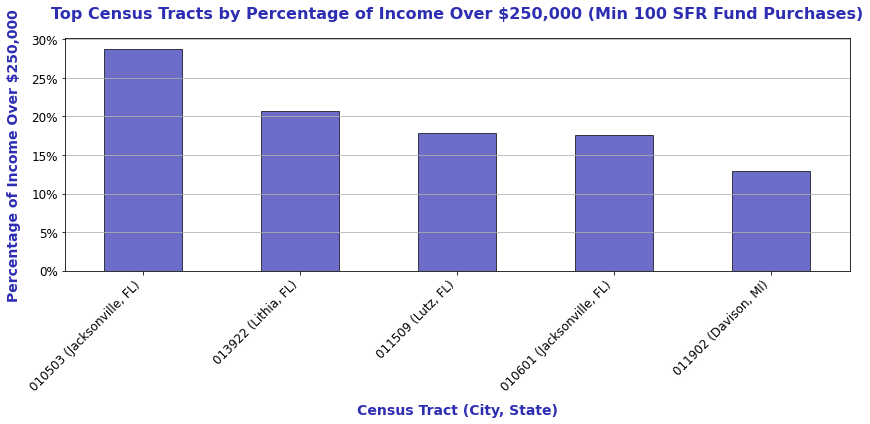 Census Tracts With Highest Percentage of $250k+ Annual Income (Min 100 Fund Purchases)