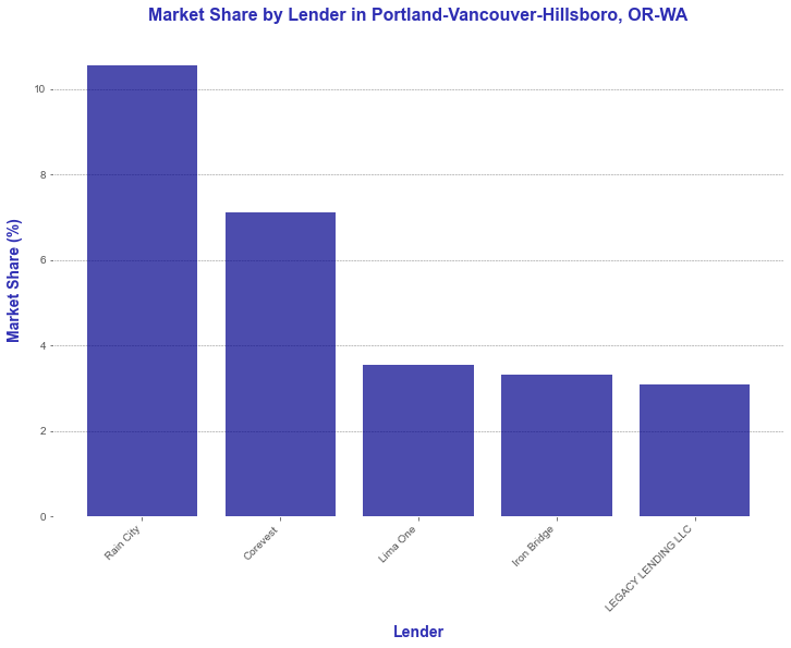 In Portland, Rain City has been the largest lender in 2023, capturing 10%+ market share.