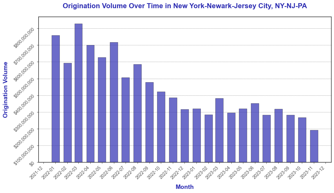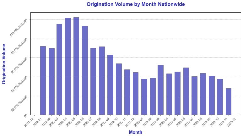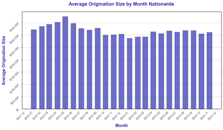 Despite the drop off in volume, average origination size has held steady from 2022 through 2023.