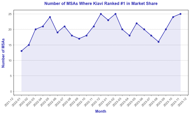 Kiavi continues to be the leading nationwide fix-and-flip lender, ranking #1 in market share across 25 different MSAs profiled as of November 2023.