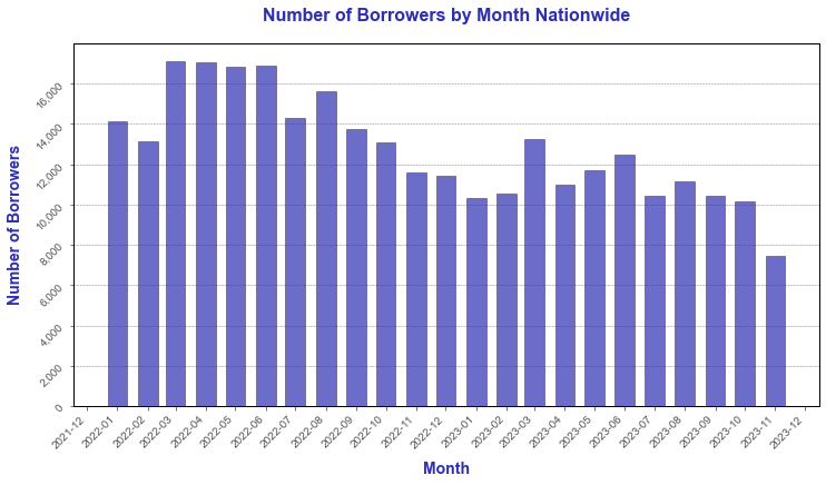 Part of the decline in origination volume can be explained by property investors exiting the market or slowing down and no longer taking loans, shown by the decrease in the number of unique investors taking out a loan in a given month.