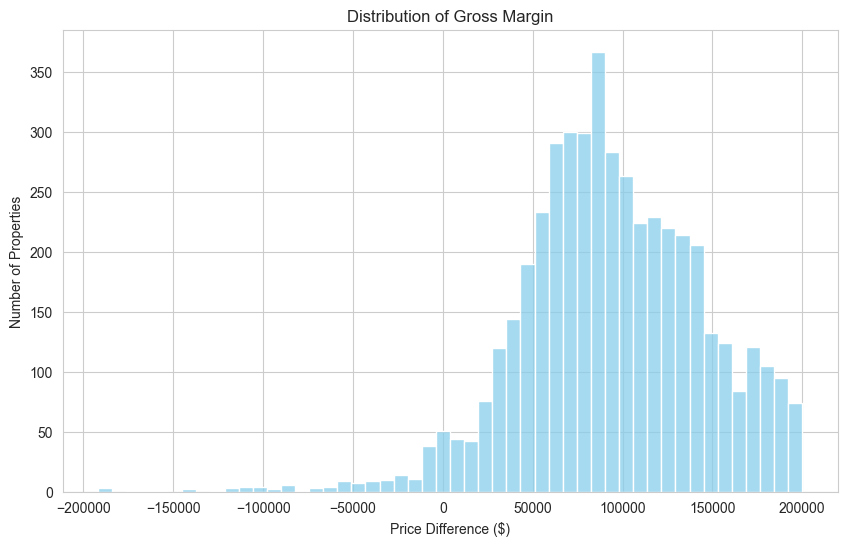 Wedgewood has generally been very successful on a gross margin basis (resale price minus purchase price), though this figure doesn’t take into account labor, materials, and financing costs involved in renovations. Many Wedgewood deals have a gross margin of $80k or greater, leaving plenty of room for profit beyond input costs. Rarely are homes resold for less than purchase price.